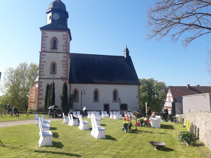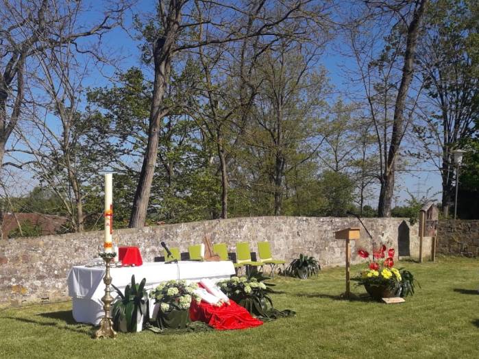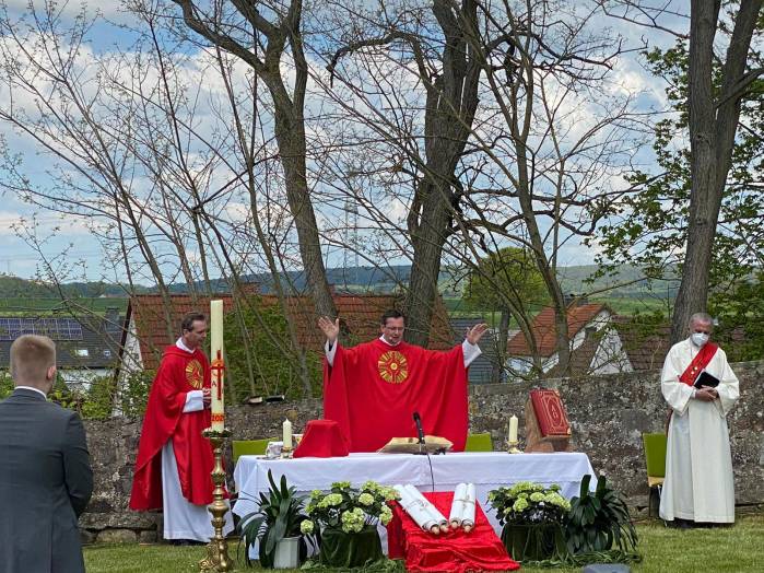 Am Sonntag, 30. Mai 2021, spendete Domkapitular Thomas Renze in Margretenhaun das Sakrament der Firmung. Bei schönem Wetter wurde der Gottesdienst auf dem Kirchplatz gefeiert.
